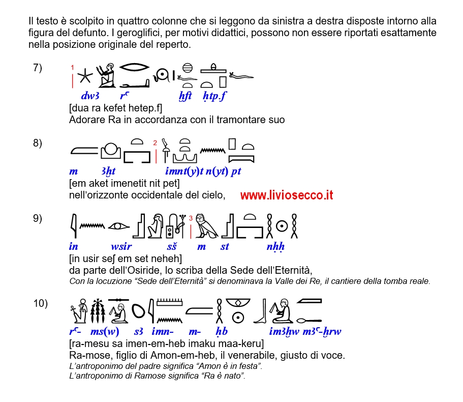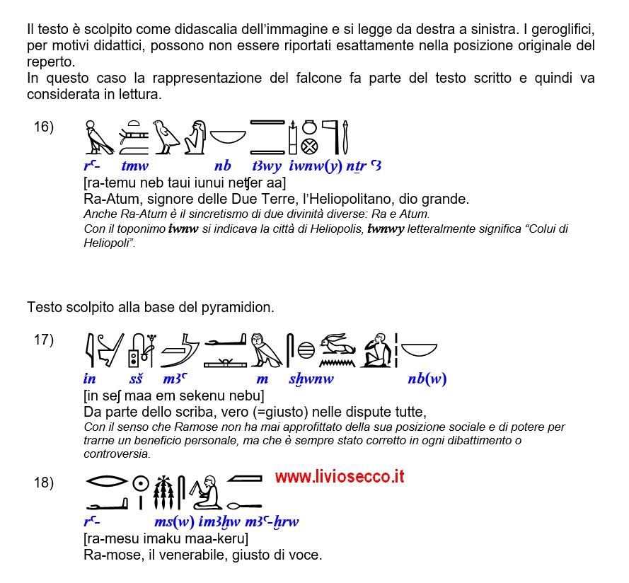 Buonasera. Grazie per i complimenti. Fanno sempre piacere e ricompensano delle fatiche passate.Non sono d’accordo su una cosa, però!Chi studia Filologia Egizia (per sport, per mestiere, per studio) non è un bischero qualsiasi.Dimostra invece di essere una persona in grado di mettersi in gioco con una disciplina tostissima che io considero una vera e propria GINNASTICA INTELLETTUALE.Perciò… Accetto i suoi complimenti e mi permetto di inviarle i miei. Continui assolutamente così.Salutoni.Livio Secco