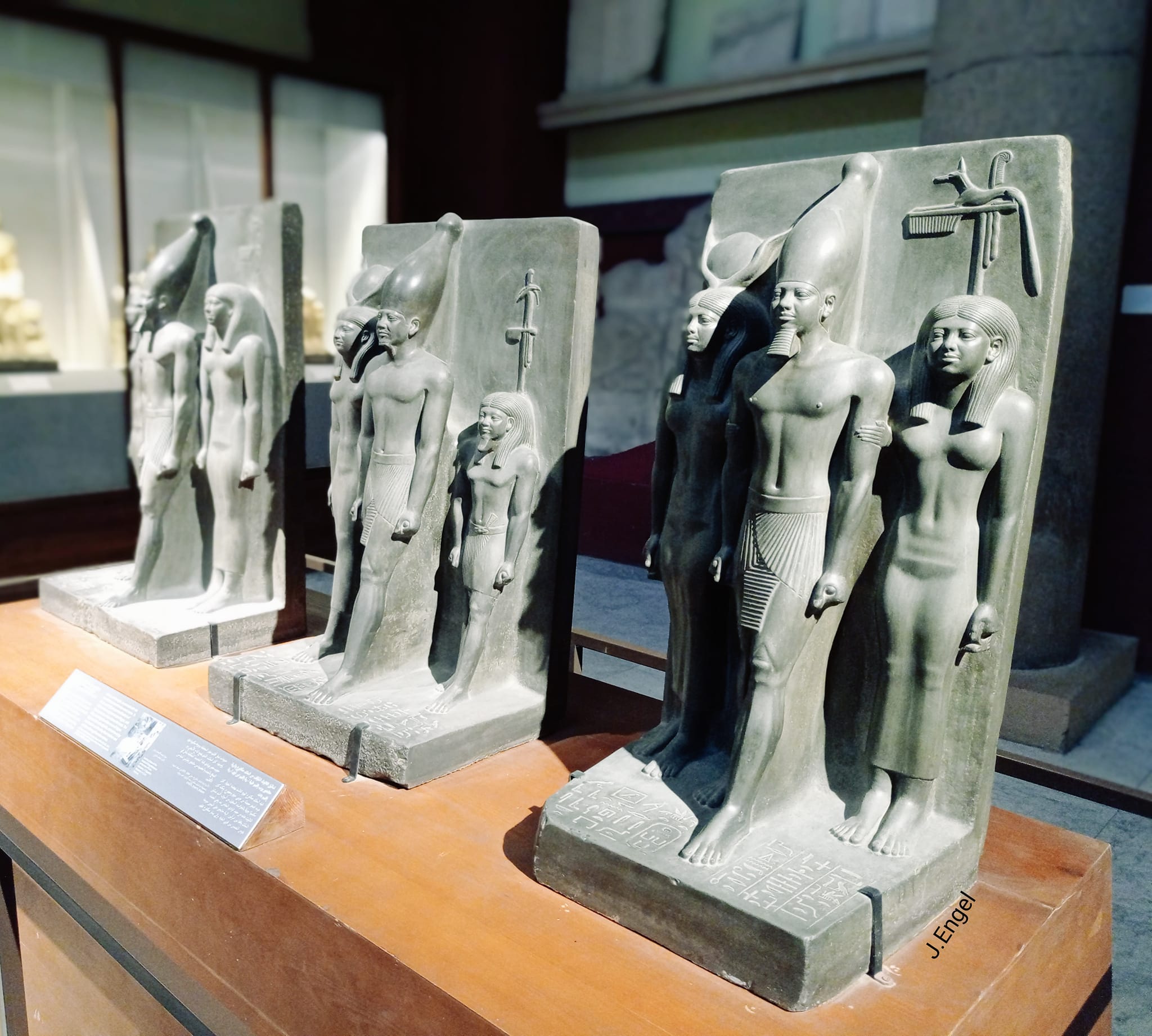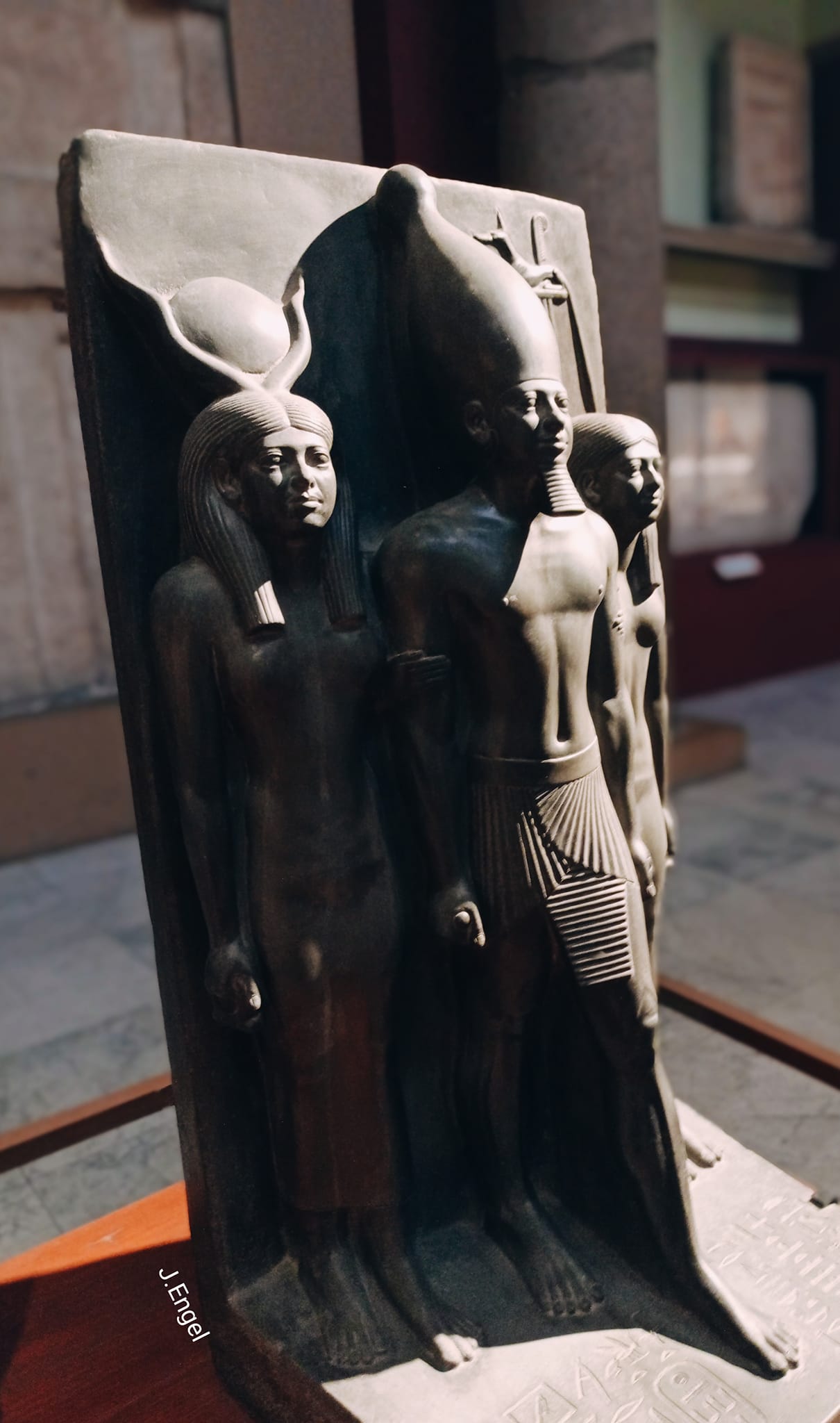 These triad statues come from his valley temple and show the king standing between two female figures.