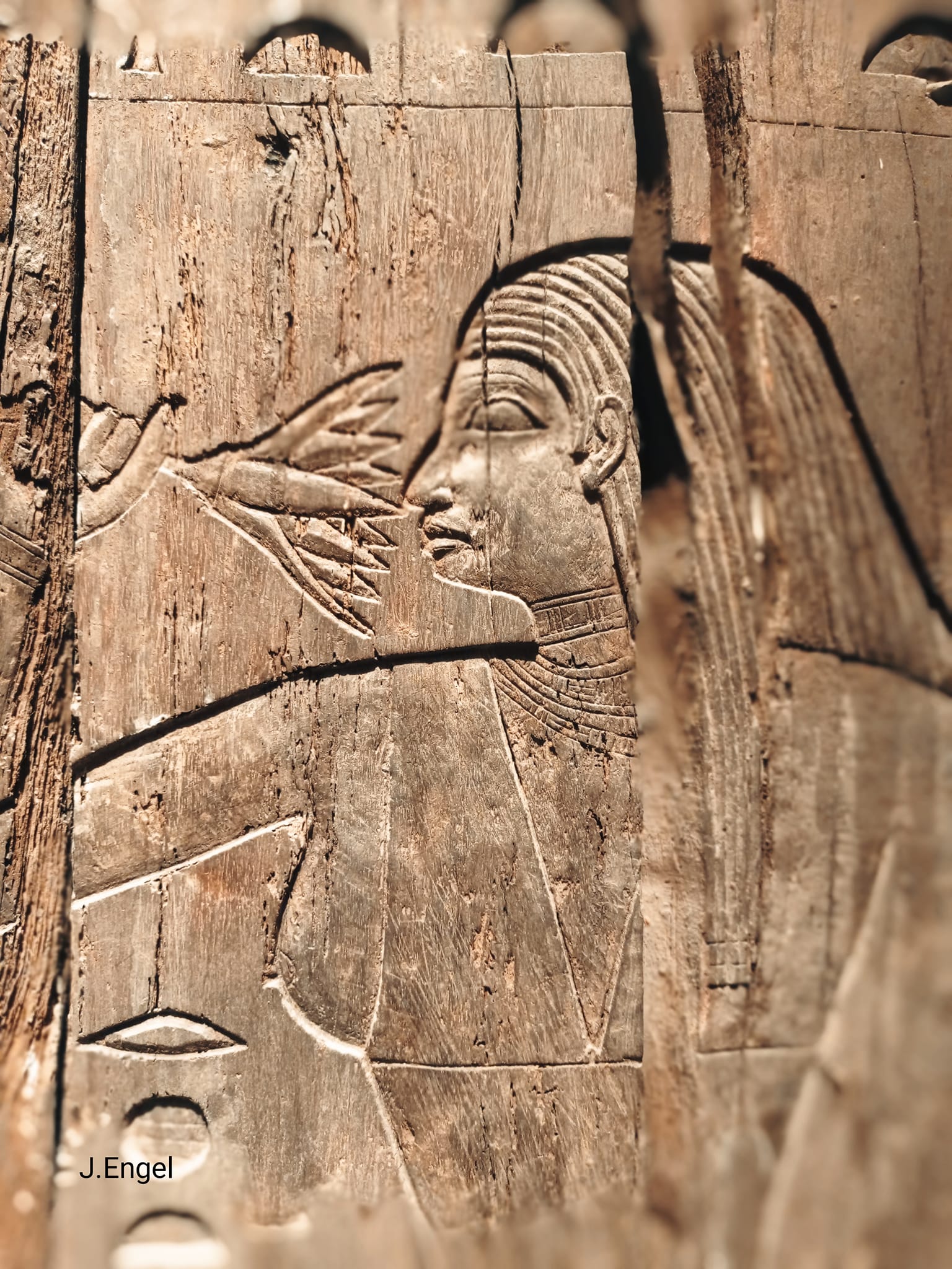 It is made of 14 separate pieces of acacia wood that were assembled and fastened together with wooden nails and leather thongs.