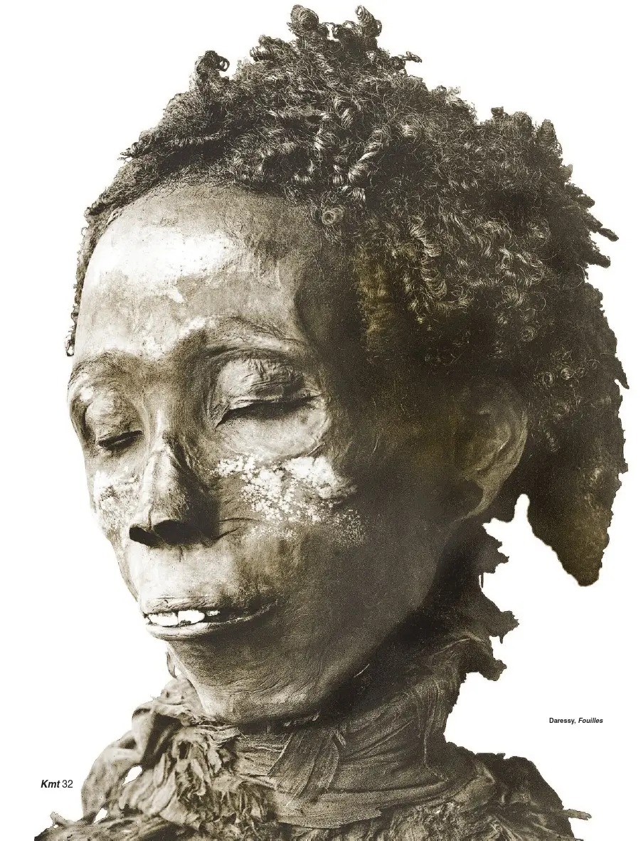 Il corpo, che nell’antichità i predatori avevano profanato con un’ascia per impadronirsi degli amuleti e dei gioielli nascosti su di esso, fu sbendato il 22 marzo 1901 da Georges Daressy, che rinvenne sulla mummia e nel sarcofago la placca d’oro destinata a coprire l’incisione praticata per l’imbalsamazione, lo scarabeo del cuore e una dozzina di gioielli oltre a due lastre d’oro poste sotto le piante dei piedi, probabilmente la suola di un paio di sandali d’oro, segno inequivocabile delle origini reali del defunto.