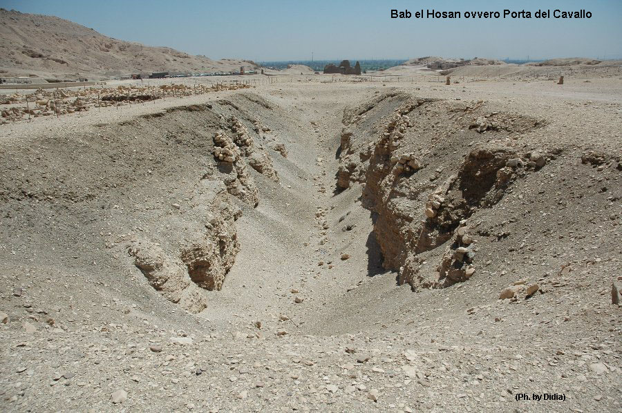 Nel 1899, Howard Carter, lo scopritore della tomba di Tutankhamon, stava facendo una cavalcata nella parte anteriore del cortile del complesso di Mentuhotep II quando all’improvviso il cavallo inciampò in qualcosa, sceso per controllare che il cavallo non si fosse ferito, Carter fece una straordinaria scoperta, davanti a lui si presentò un ingresso che accedeva al sottosuolo. In seguito a quell’episodio gli arabi lo chiamarono poi, “Bab el-hussan”, (Porta del cavallo).