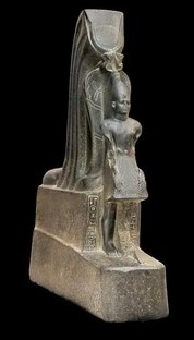 I gruppi composti da una figura umana e da una divinità teriomorfa verranno ripresi anche in Epoca Tarda nella Statuaria.