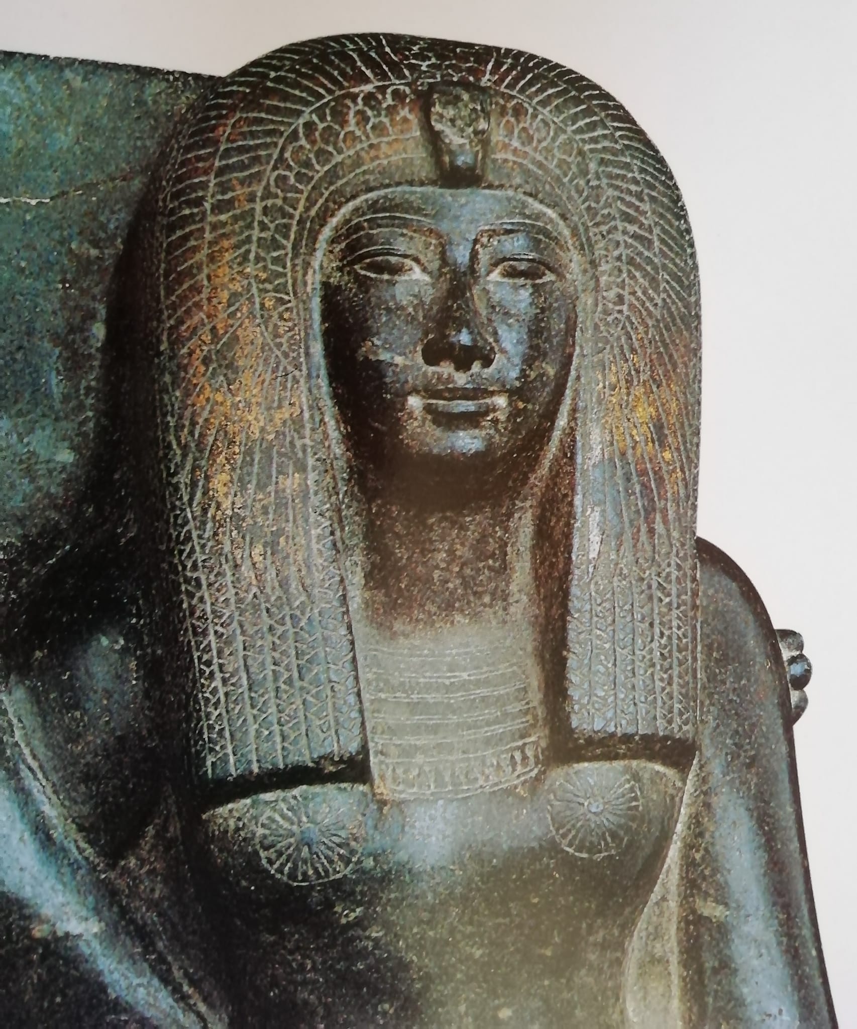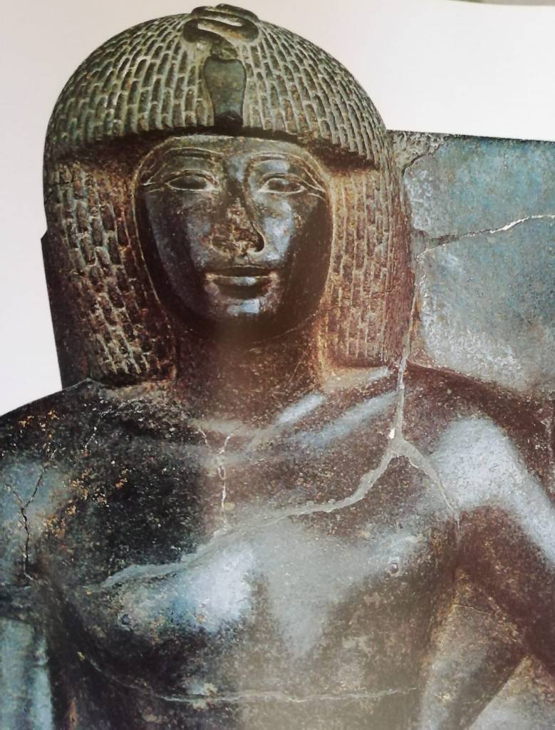 I volti delle due figure sono praticamente identici eccetto per il trucco regale, allungato verso le tempie, che ora gli occhi del sovrano.