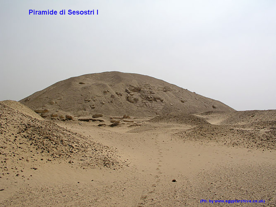 Per la sua piramide Sesostri I scelse anch’esso la necropoli di El-Lisht, la fece costruire circa 1,5 chilometri a sud di quella del padre e la chiamò “Senousret-peter-tawy” (Senousret contempla le Due Terre). Pur essendo poco più grande di quella del padre non si differenzia molto da quest’ultima.
