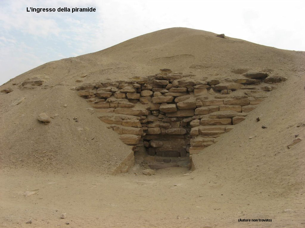 Eccezionalmente in questa piramide non sono stati trovati blocchi di pietra depredati da altri complessi funerari. Questa nuova tecnica costruttiva si rivelò ben presto fallimentare presentando presto problemi di stabilità che col passare dei secoli ridusse l’edificio a quello che vediamo oggi, una montagnola di materiale litico.