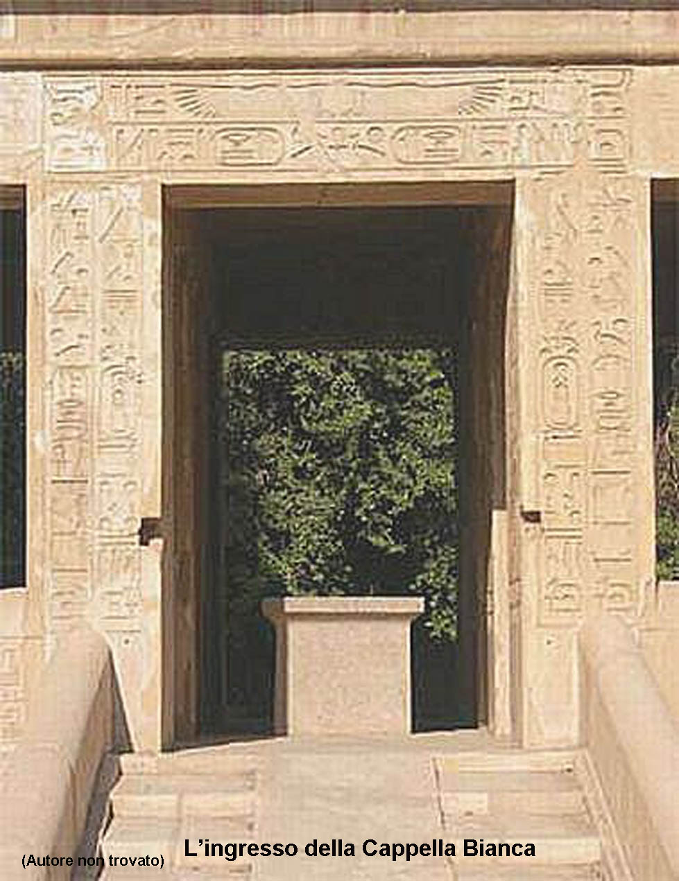 Al suo interno si possono ammirare gli stupendi rilievi, tracciati con grande precisione sui pilastri, dove si vede il faraone Senousret I, con il dio Amon e altre divinità come Min, Thoth, Ptah e Horus.