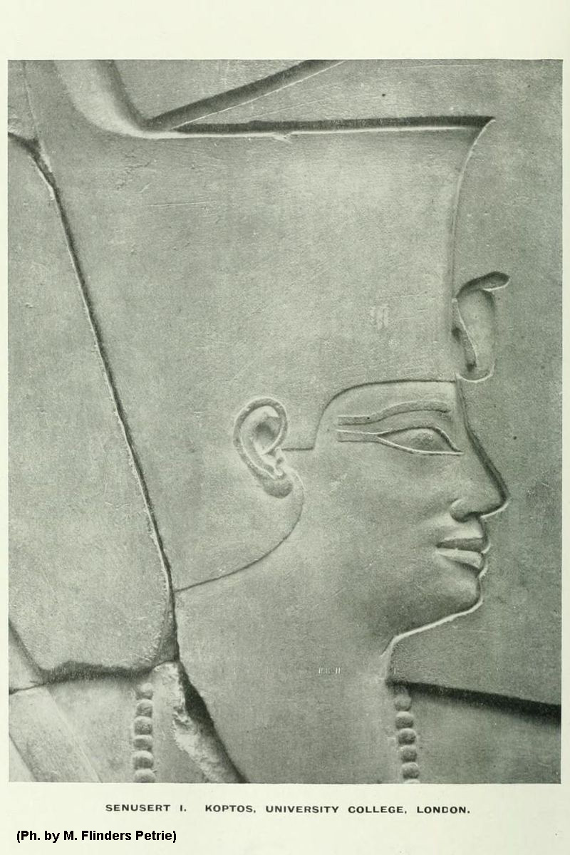 Kheperkara Senuosret I, (in greco Sesostri), fu un grande sovrano, di lui abbiamo parlato in precedenza e penso che non sia necessario aggiungere molto altro. Con il suo popolo fu molto magnanimo, attuò una illuminata politica di riforme amministrative, legislative e sociali che gli guadagnarono titoli quali: “Stella che illumina il Doppio Regno” o anche “Falco che conquista alla sua potenza”. Nel racconto di Sinuhe viene definito “Maestro di saggezza i cui piani sono perfetti”. Liberò dalla schiavitù molti prigionieri di guerra e dal capestro dei debiti, tutti i sudditi dimostrandosi però risoluto e severo nel sedare ogni tentativo di ribellione per evitare il ritorno all’anarchia del Primo Periodo Intermedio appena chiuso. Dedicò templi a tutti gli Dei, da Ra ad Ammon, da Atum a Ptha, il più superbo, di cui rimangono solo poche tracce, fu un grandioso Tempio dedicato a Ra-Haracthy. Valorizzò il Fayyum dove intraprese una vasta opera di canalizzazione e qui fondò la sua capitale, Shedet (dai Greci chiamata Coccodrillopolis) sotto la protezione di Sobek, il Dio-Coccodrillo, “Signore dei Pantani”.