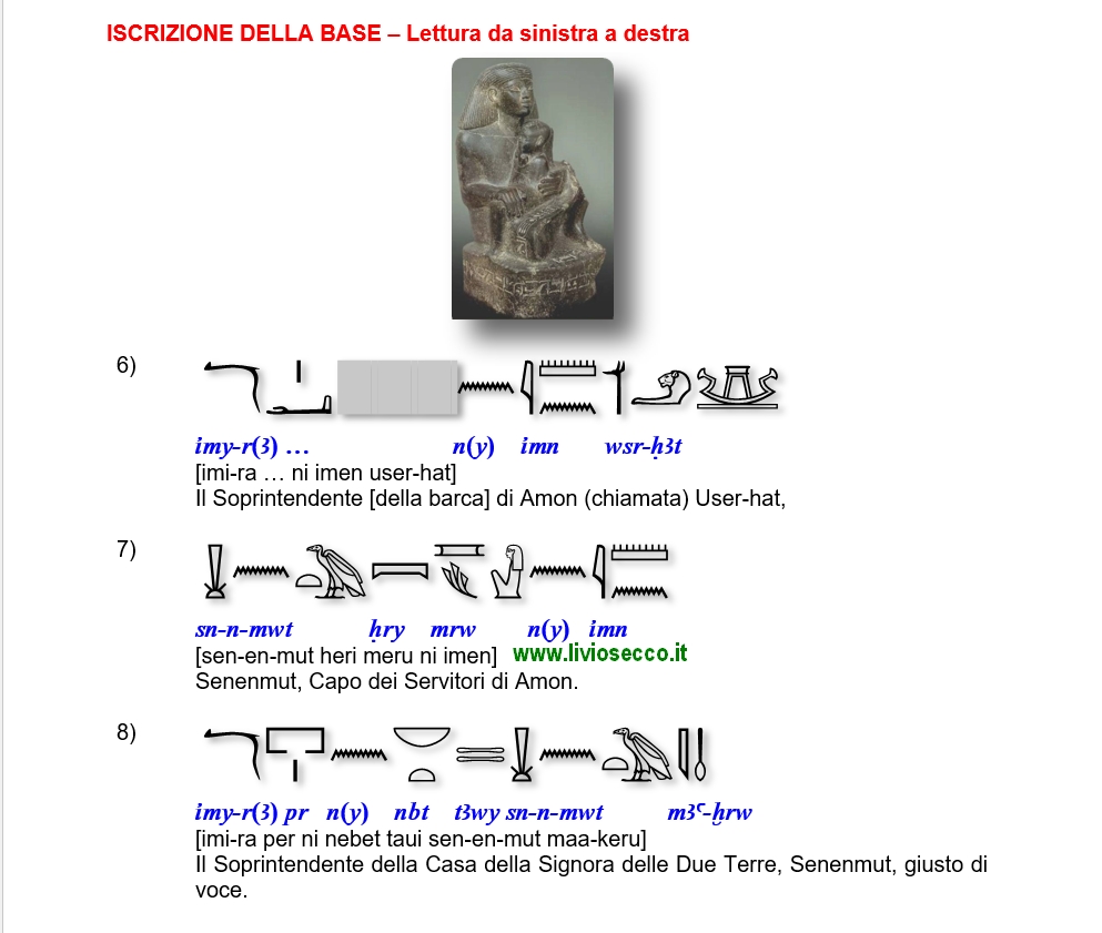 Mercoledì 1 febbraio la nostra Grazia Musso ha postato un articolo su una delle statue che rappresentano Senenmut con in braccio Neferura, la figlia di Hatshepsut e Thutmose II (codice CG42116, JE36923)
