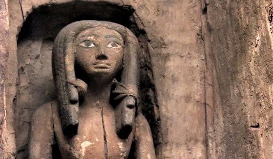 La figura femminile in legno di sicomoro, sottile e elegante, rappresenta la dama Ibentina, moglie di Satnem, il proprietario della tomba in cui fu ritrovata.