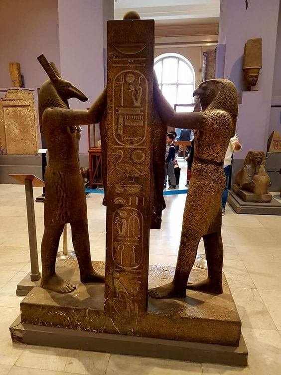 Questo gruppo statuario decisamente conosciuto raffigura Ramesse III posto tra gli dèi Horus e Seth.