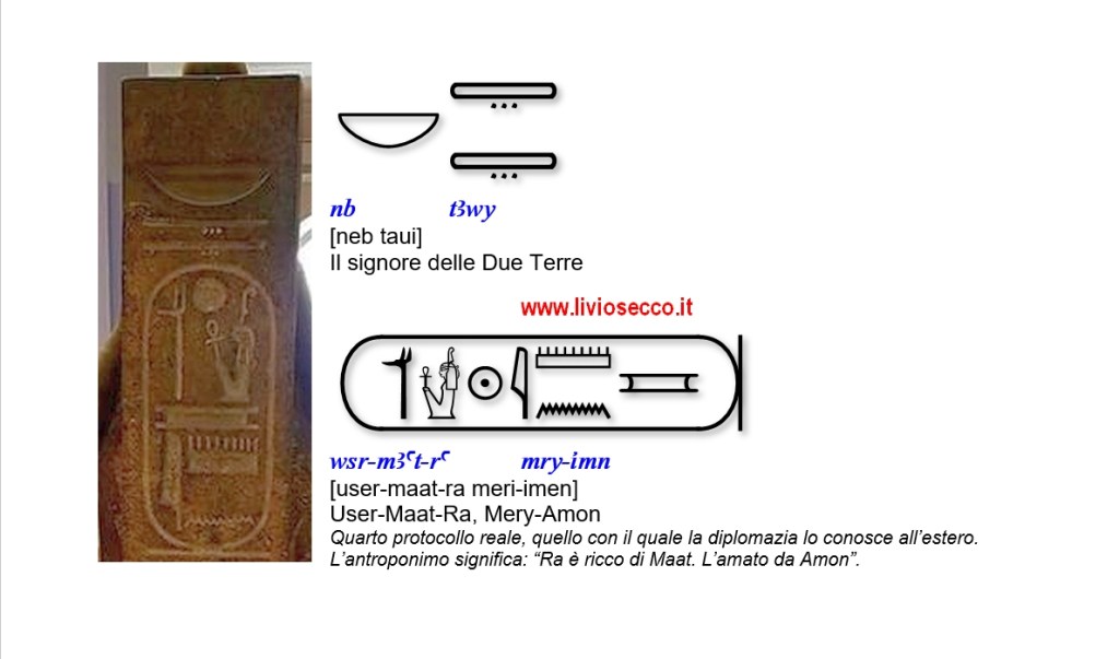 Per chi volesse approfondire la tematica dei nomi dei sovrani egizi consiglio la lettura del Quaderno di Egittologia numero 22 dal titolo IL PROTOCOLLO REALE – Composizione dell’onomastica egizia che potete trovare qui: https://ilmiolibro.kataweb.it/…/il-protocollo-reale/