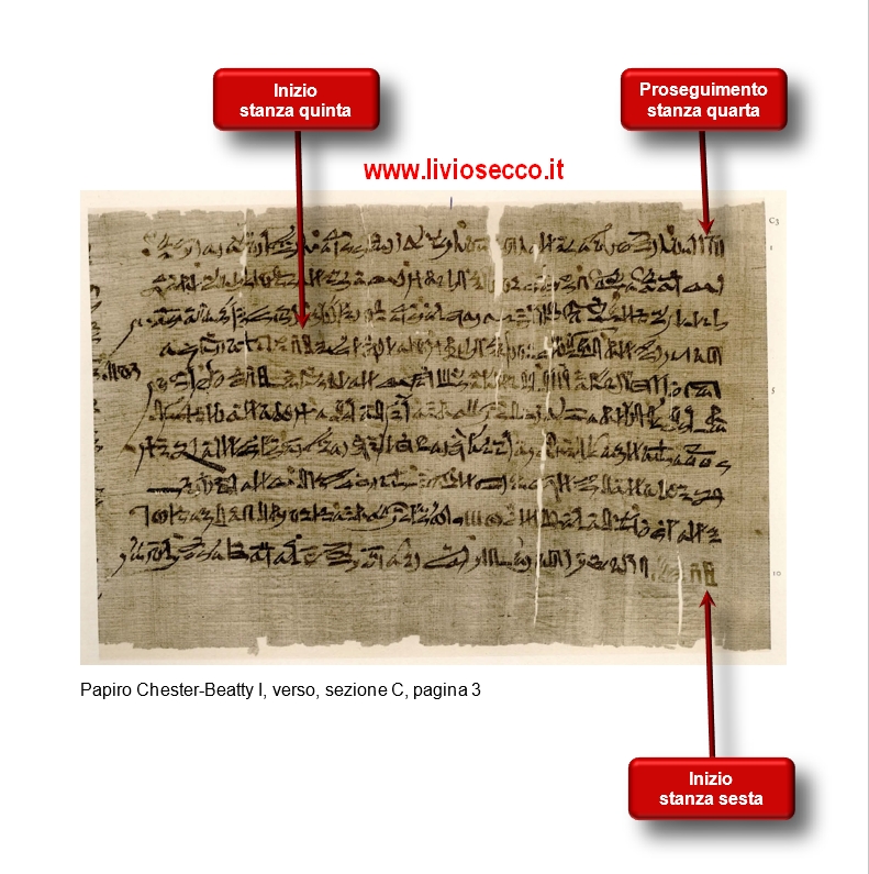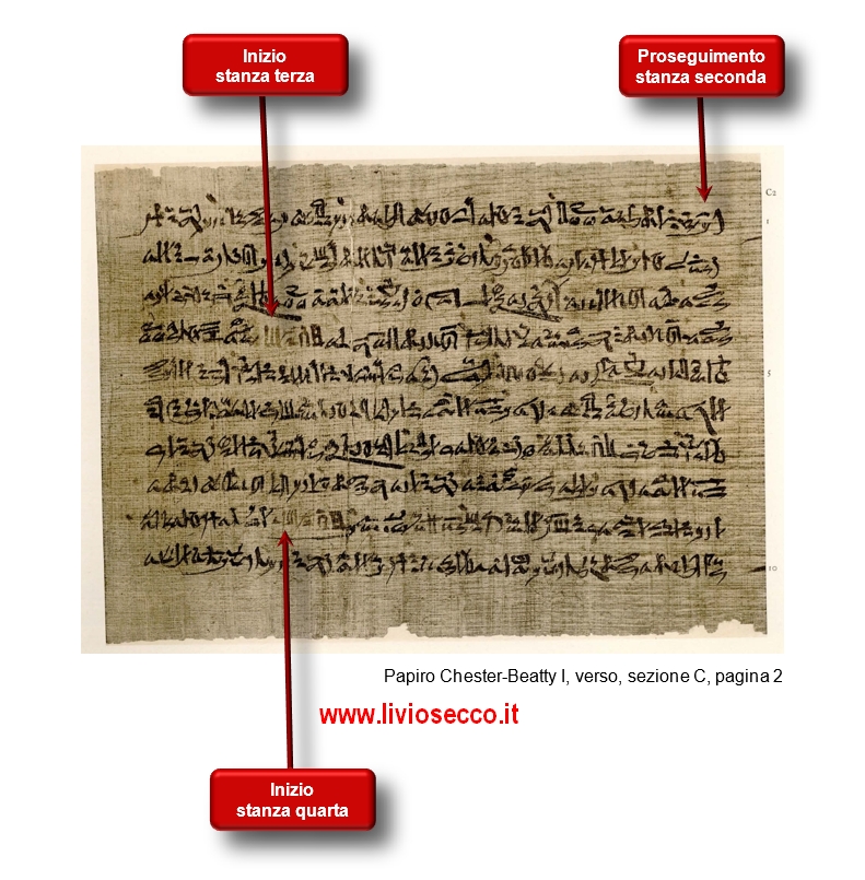 Il Papiro Chester Beatty I riporta una serie di dialoghi tra due innamorati che vengono suddivisi in sette stanze.