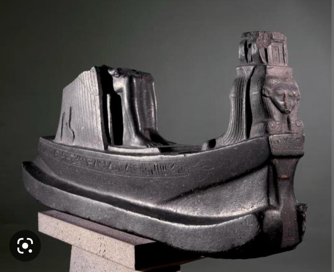Questa scultura rappresenta una barca sacra su una slitta. Comprendeva una figura seduta della regina Mutemwia, moglie di Thutmose IV. Solo le gambe e la mano destra sono rimaste intatte, ma anche parte della testa è al British Museum.