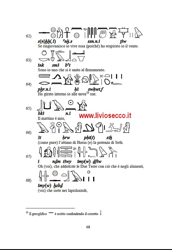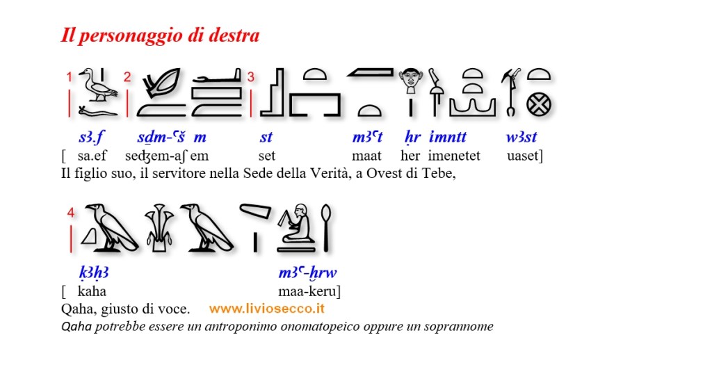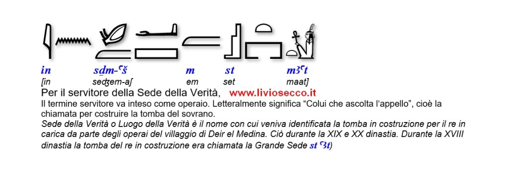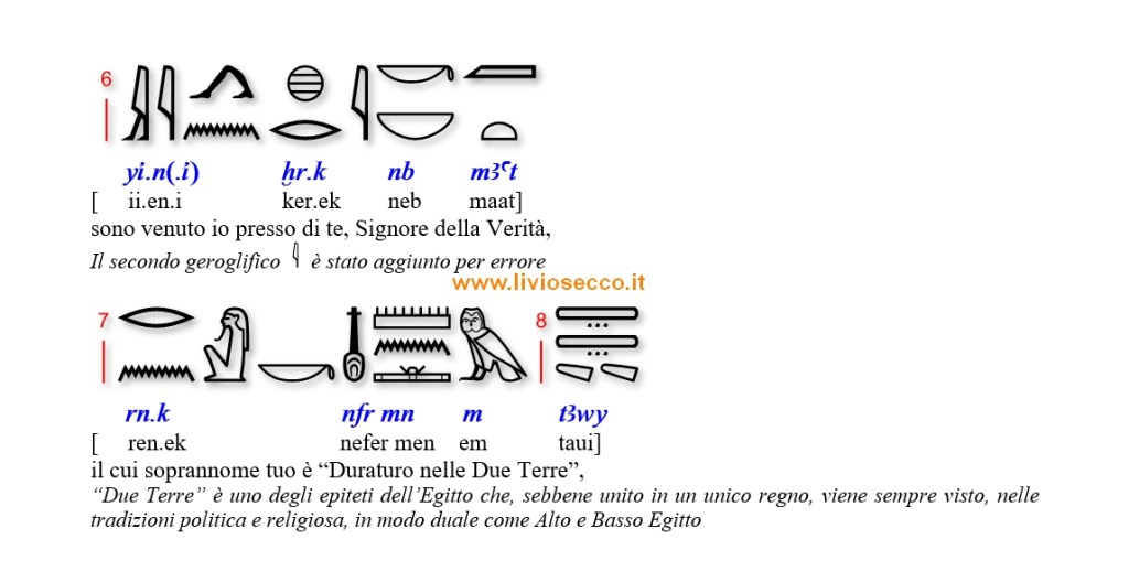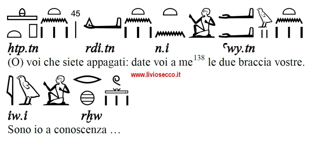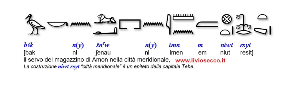 Qui riporto la corrispondente grafia geroglifica.