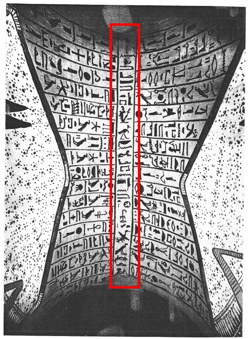 Su questa parte del soffitto ci sono quarantacinque colonne di geroglifici.