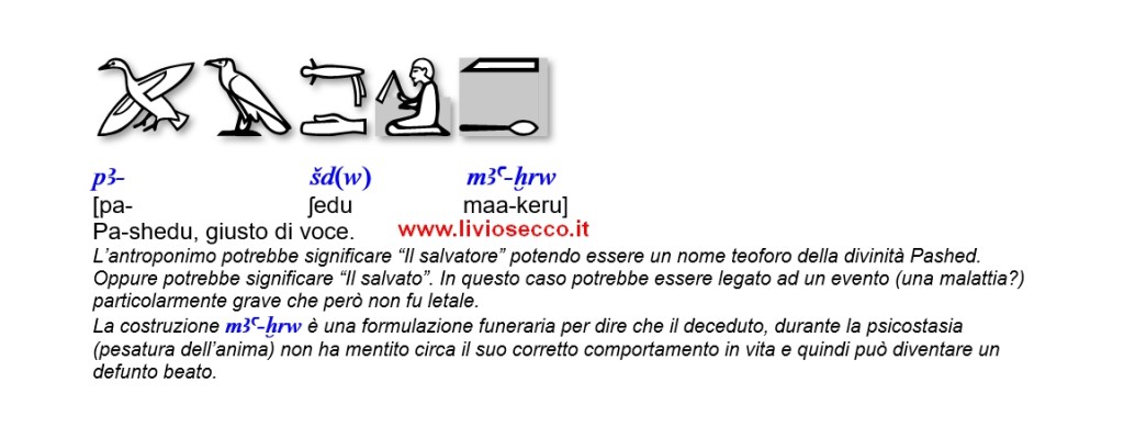 Traducendo i testi, infatti, si comprende come Pashedu sia un esperto di pietre. Perciò non era un pittore ma sicuramente un cavatore.