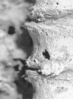 Osteolisi di un corpo vertebrale di un uomo deceduto tra i 50 ed i 60 anni, un’età elevata per l’epoca; dai paleopatologi è considerato una conseguenza di un mieloma multiplo. Nuovo Regno, necropoli occidentale di Tebe