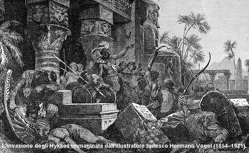 Tanto per farci un’idea di chi erano gli Hyksos (di cui tratteremo meglio in seguito) è necessario tornare alla fine del Medio Regno quando, approfittando di un momento di debolezza dell’impero tebano, popoli semiti provenienti dall’Asia, dalla quale erano fuggiti forse a causa della pressione delle popolazioni indoeuropee ittiti, cassiti e hurriti, passarono i confini del Basso Egitto occupando, dapprima pacificamente, una parte del Delta.