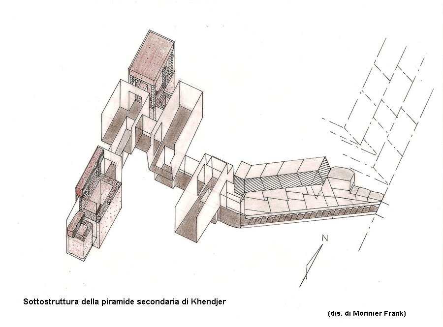 Sul lato nord-est si trova la piramide secondaria, la parte sottostante è formata da due ipogei sempre monolitici ma più piccoli di quello di Khendjer. Probabilmente in origine erano destinati alla sepoltura delle spose reali del faraone, gli studiosi però ritengono che non furono mai usate.