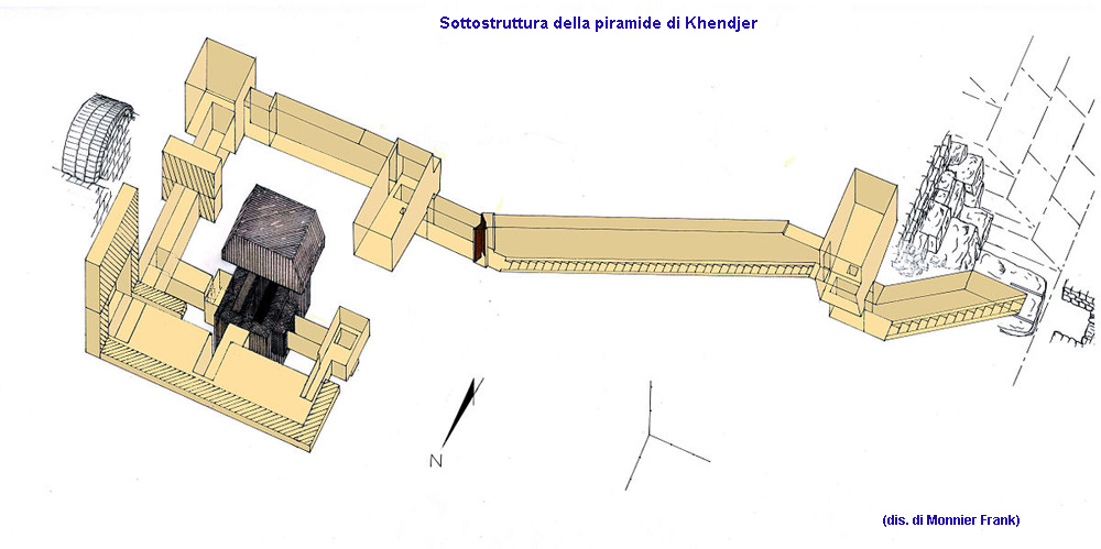 Nella zona a sud-est della piramide di Khendjer, Jéquier scoprì un’altra piramide completamente anonima e di datazione incerta. Con ogni probabilità la sovrastruttura non fu mai portata a termine ma con immensa sorpresa l’egittologo scoprì che la struttura ipogea era stata ultimata, non solo, ma dalle fattezze si può classificarla come una delle più belle di tutto il Medio Regno. Gli ambienti si presentano rivestiti in calcare bianco con brevi strisce di colore nero che si alternano. L’entrata era situata sulla parete orientale, da qui partiva una rampa scalinata che terminava in un lungo corridoio provvisto di tre barriere, che conduceva in un’anticamera. Da questa si accedeva a due camere funerarie, ad ovest quella più grande del re, a nord quella più piccola della regina. La camera del re si presentava come per le precedenti piramidi formata da un enorme monolite di quarzite con l’incavatura per il sarcofago ed i canopi. La copertura della camera era formata da tre lastroni di quarzite due dei quali erano calati in posizione mentre il terzo era ancora sollevato e poggiato su due montanti. Da ciò si può dedurre che nessuno fu mai sepolto in quella piramide.