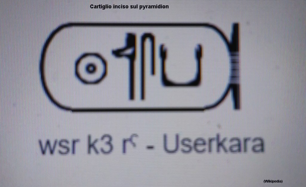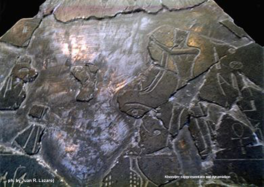 Dagli scavi eseguiti sul fianco della piramide venne ritrovato un pyramidion in pezzi che riportava su una faccia un cartiglio col nome Userkara, sicuramente uno dei due praenomen di Khendjer; il pyramidion ricomposto è oggi custodito al Museo Egizio del Cairo.