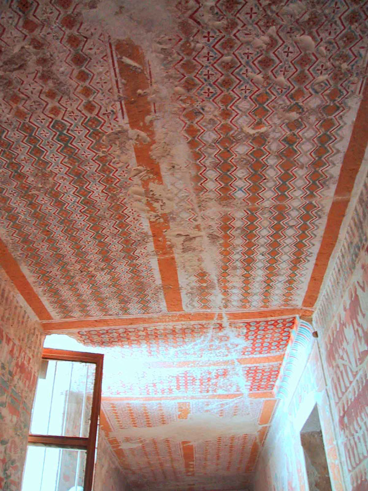 I soffitti sono coloratissimi, mentre nelle immagini il nero si è ormai sbiadito e predominano il rosa ed il sabbia. Tutte le pareti sono sormontate da un fregio kheker, ad eccezione della parete posteriore della seconda camera. Una striscia non decorata separa le scene dal suolo.
