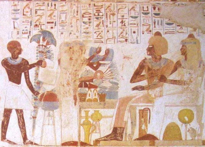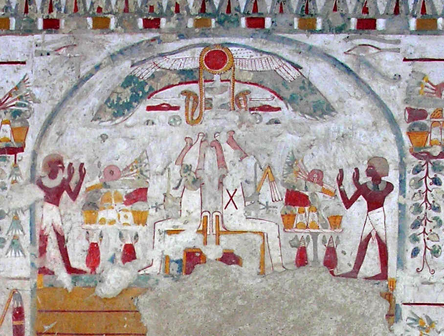 Sulla sinistra della parete sud, in faccia all’ingresso, quasi completamente distrutta, troviamo la rappresentazione della “Bella festa della valle” (5), che veniva celebrata fin dal Medio Regno e che era la più importante tra le feste dedicata agli Antenati, molto simile alla nostra ricorrenza del 2 novembre (ne parlerò in un post di prossima pubblicazione) .