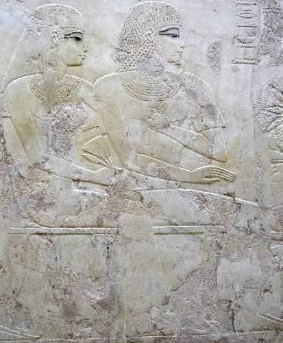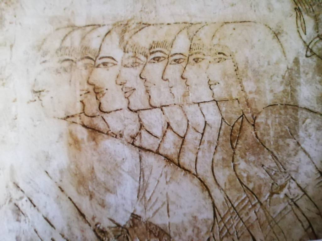 Fra le raffigurazioni della tomba di Ramose si trovano quelle del faraone Amenhotep IV/Akhenaton che riceve l’omaggio dei popoli stranieri e dei cortigiani. Qui vediamo questi ultimi che si in chinano.