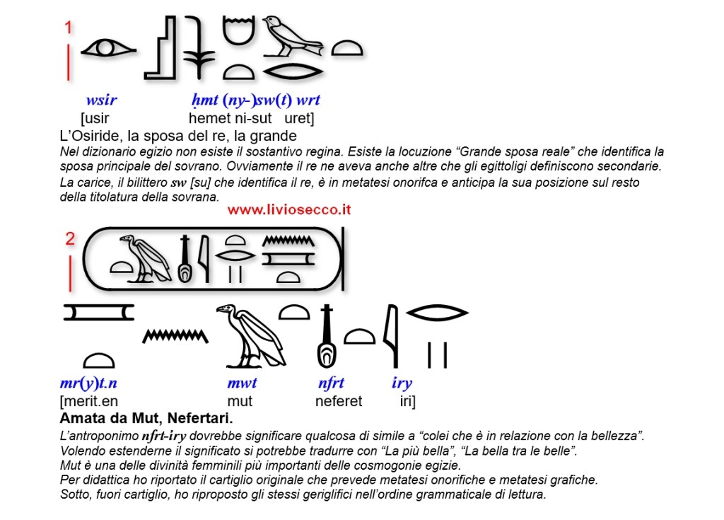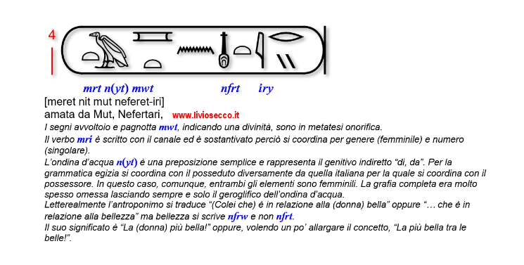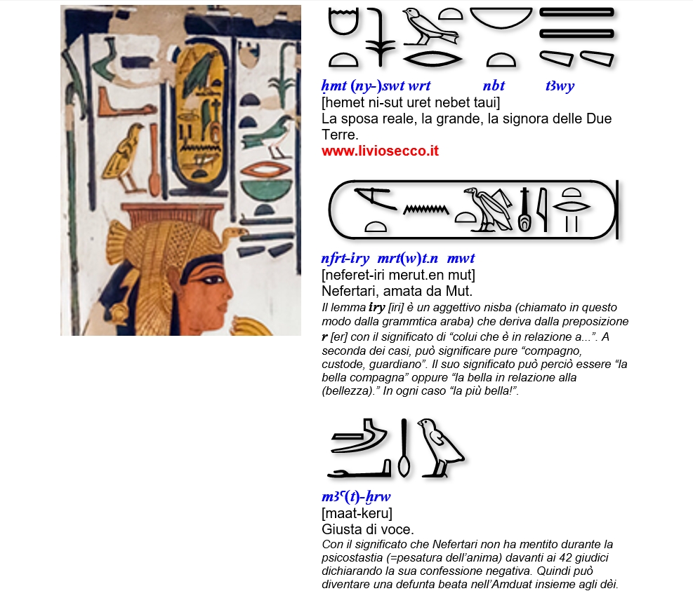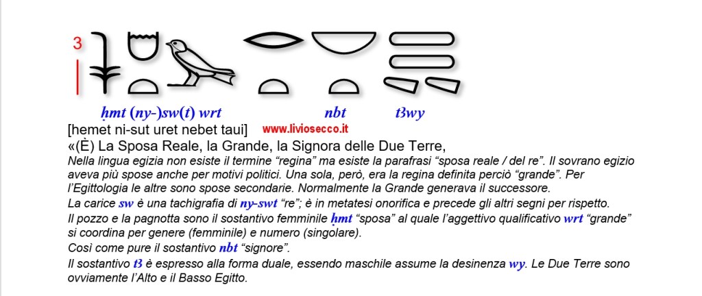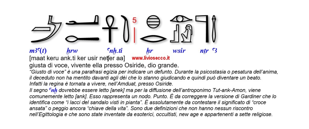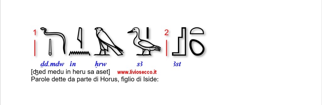 Come al solito ho aggiunto qualche osservazione e soprattutto la pronuncia secondo il codice IPA per coloro che vogliono leggere i geroglifici senza averli studiati.