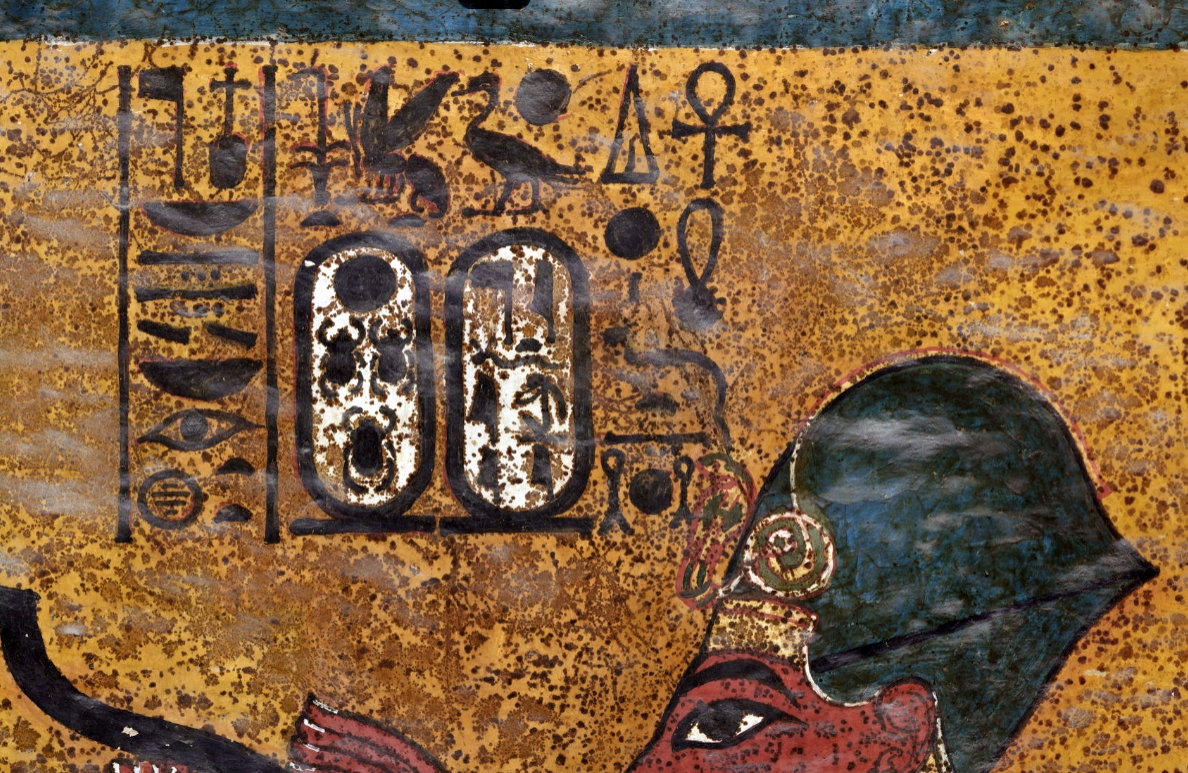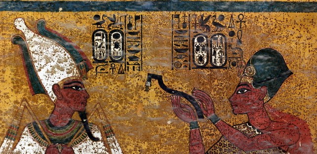 Sulla parete Nord della camera sepolcrale di Tutankhamon, quella che il visitatore si trova frontalmente appena accede alla camera funeraria, all’estrema destra viene raffigurata la mummia del re defunto e il suo immediato successore mentre esegue su essa la cerimonia di apertura della bocca per ridare al re l’uso dei cinque sensi nell’Aldilà.