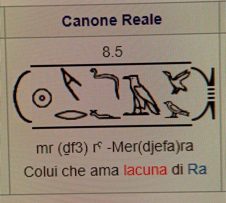 Dopo un’analisi stilistica dei glifi utilizzati, gli egittologi che si sono dedicati allo studio del Canone Reale, hanno formulato l’ipotesi che, a partire dal nome di questo sovrano, molti dei nomi che seguono nelle colonne 9 e 10 siano del tutto fittizi e che non appartengano ad alcun sovrano realmente esistito ma che siano stati inseriti nel Canone per una oscura ragione che non si sa spiegare. Le gravi lacune delle due colonne rendono difficoltosa la lettura ed ancor più la collocazione degli ulteriori frammenti del papiro.