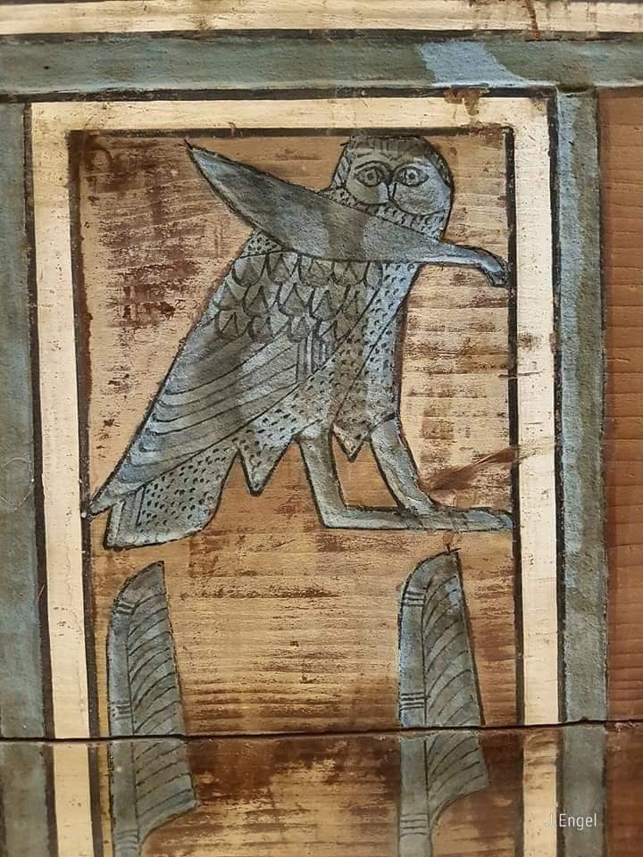 The interior decoration is entirely painted and contains a series of spells in cursive hieroglyphs taken from the Coffin Texts and from the Book of the Two Ways that contained a map of the underworld.