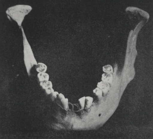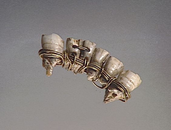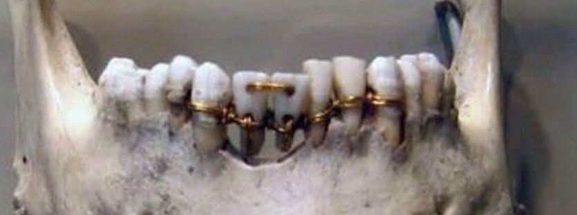 Molti di voi avranno visto la prima immagine qui sotto, descritta come una prova della perizia degli antichi dentisti egizi. Raffigura un ponte inferiore completo, con due incisivi legati agli altri denti da fili d’oro simili a quelli mostrati in questa rubrica giovedì scorso. Gira da anni sui social network ed è finita anche su pubblicazioni ufficiali, anche di un certo rilievo.