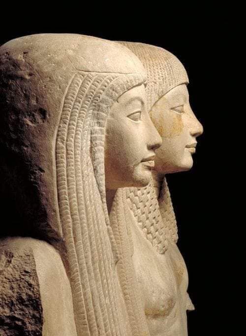 Questo gruppo statuario raffigura Maya e Merit come destinatari delle offerte.