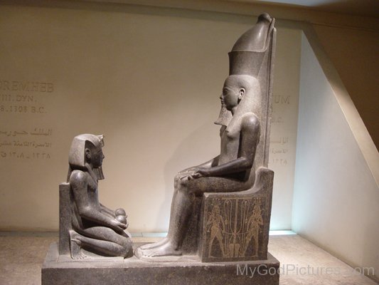 Con Horemheb si completa il processo di ritorno all’ortodosdia e si moltiplicano i gruppi statuari del re accompagnato da varie divinità.