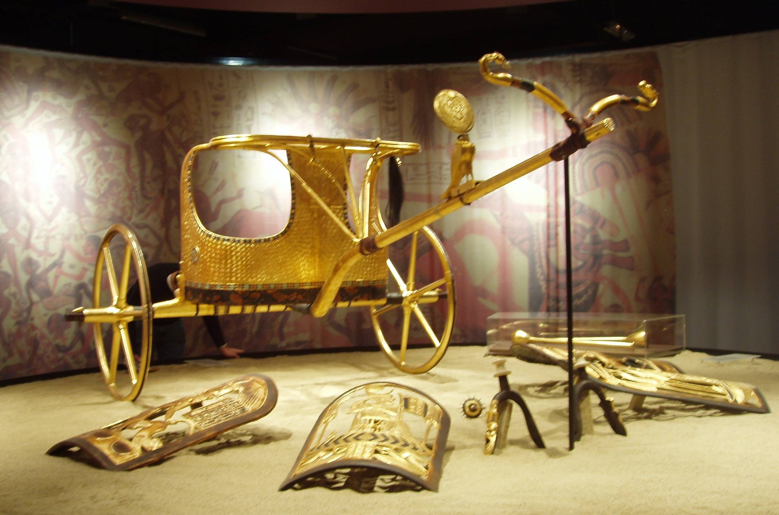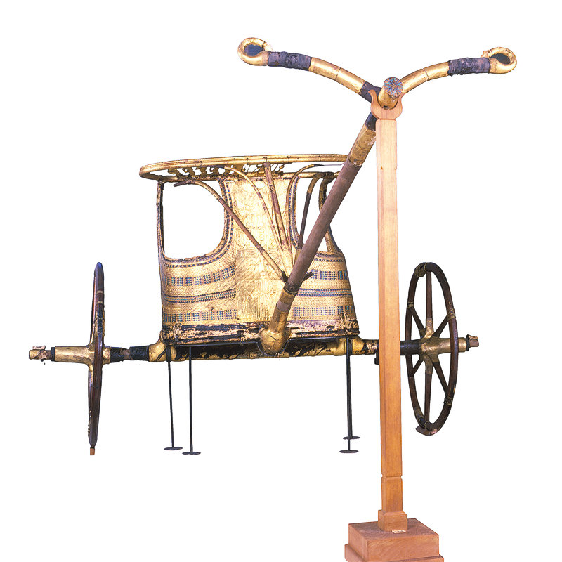 Prima della scoperta della tomba di Tutankhamon, solo altri due carri erano venuti alla luce (insieme al cassone di un carro di Tuthmosis IV praticamente distrutto): uno (ora esposto a Firenze) appartenuto a Kenamun, fratello di Amenhotep II, e l’altro trovato nella tomba di Tuya e Yuya da Davis, ma entrambi ben lontani dalla magnificenza dei carri di Tutankhamon.
