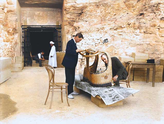 Carter odiò i carri con tutto il cuore. I quattro nell’Anticamera erano accatastati uno sull’altro, gli assali segati per farli entrare nella tomba, con ulteriore scompiglio portato dai predoni nell’antichità e i finimenti in cuoio erano marciti. Estrarli, stabilizzarli e ricomporli fu un incubo. Solo il carro 122 era diviso in un centinaio di pezzi da riassemblare senza rovinare i decori…