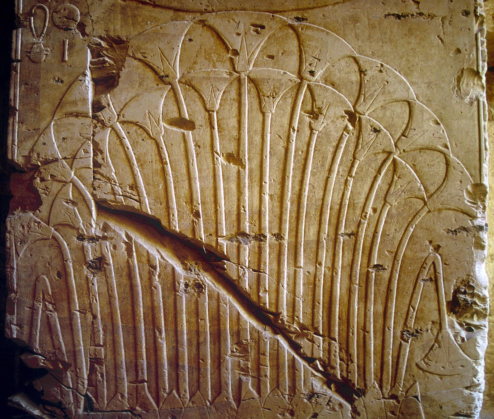 Papyrus plants representing Lower Egypt [under winged Ma’at figure].