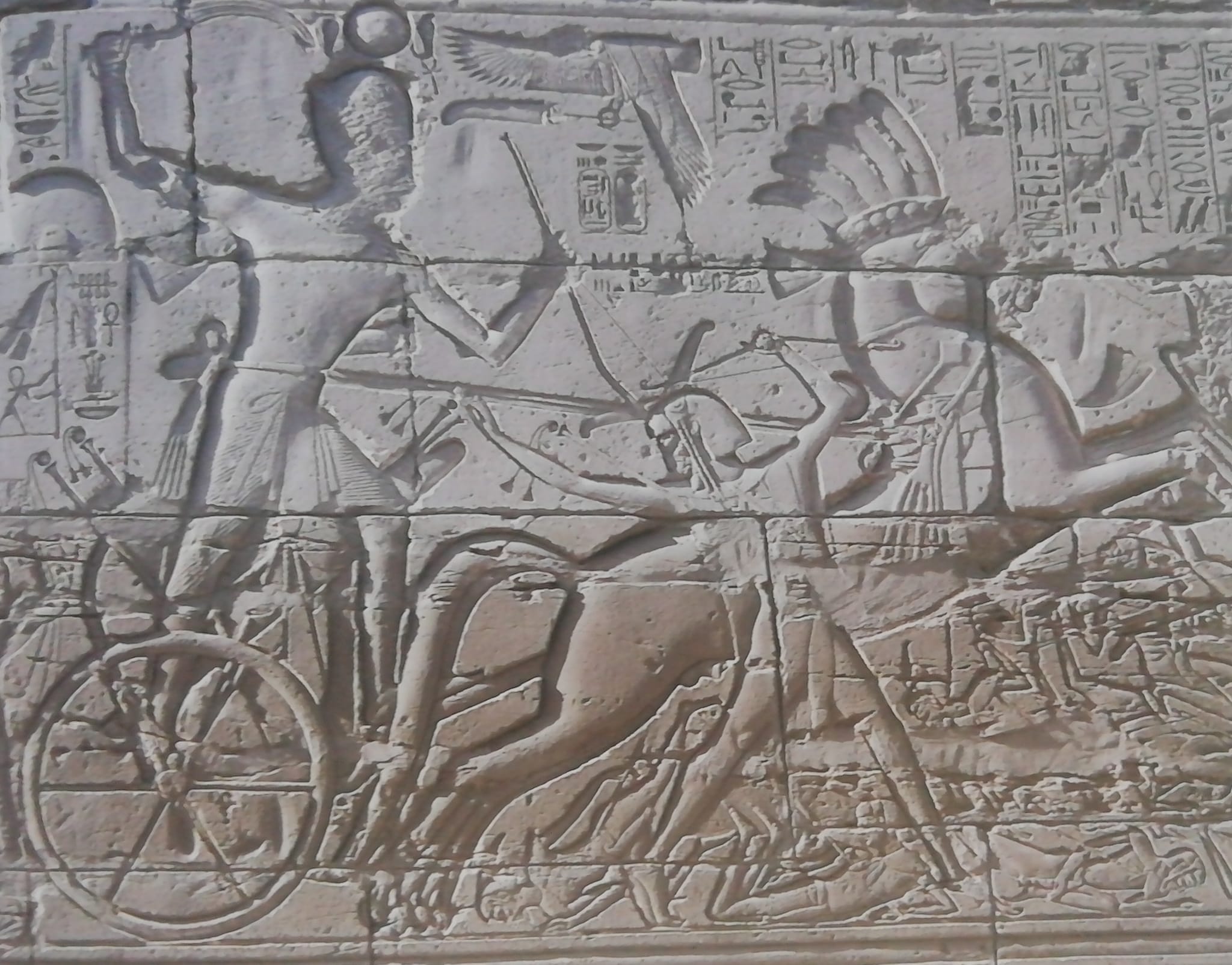 I corpi si contorcono, trafitto dalle frecce, sono i corpi degli Asiatici. La scena si trova su un blocco proveniente da un monumento di Ramses III, reimpiegato da Ramses IV, nelle fondazioni del suo tempio funerario. Da Tebe Ovest, Assasif.