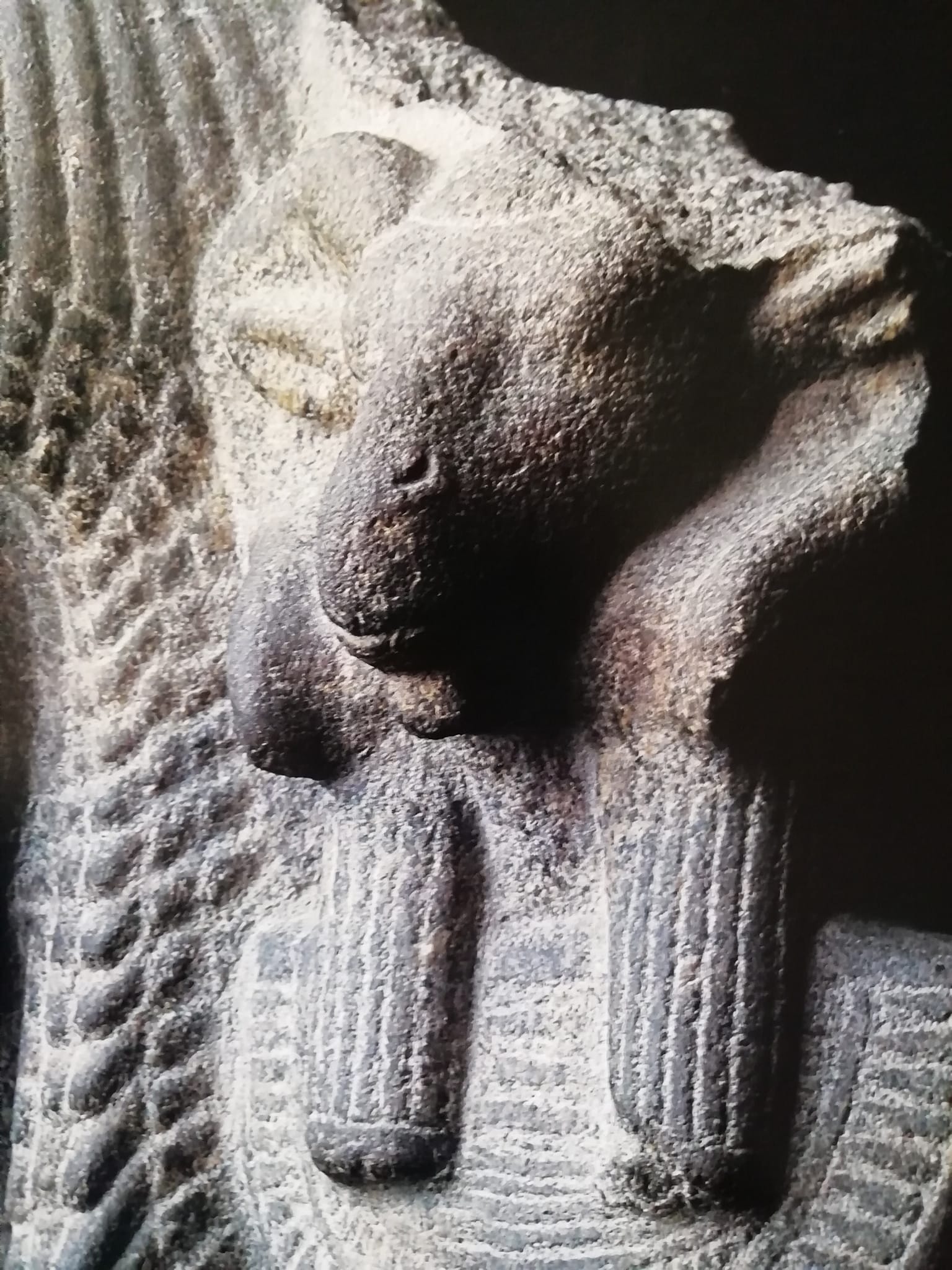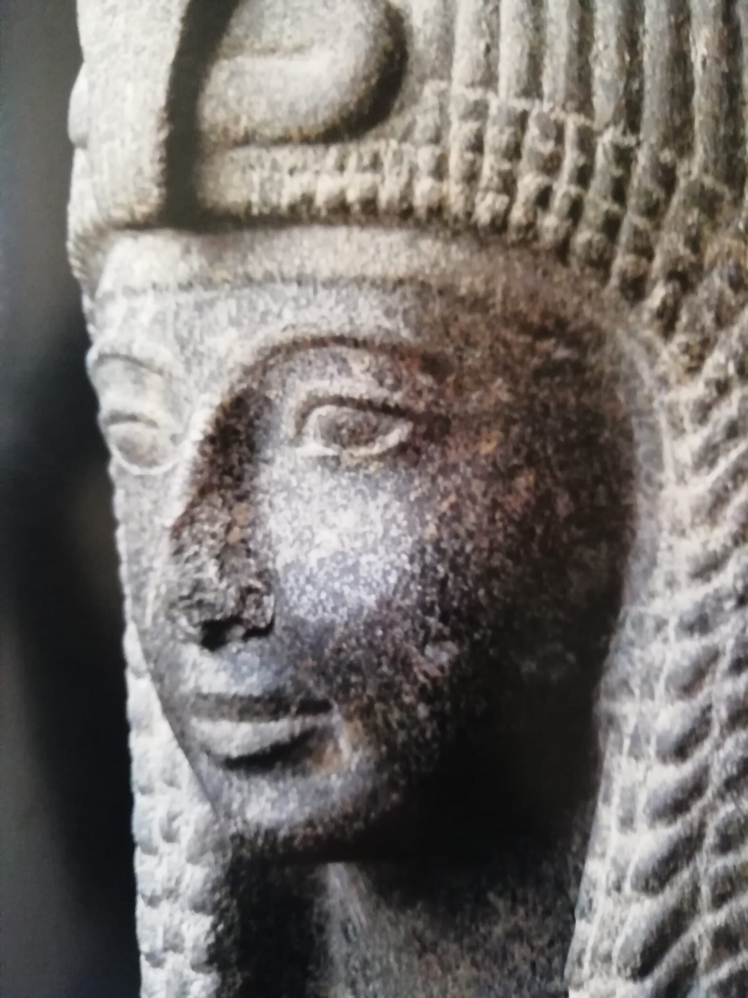 Le sculture che ritraevano il sovrano con uno stendardo erano poste all’entrata dei Templi e supplivano alla mancanza del monarca nel corso delle processioni, quando appunto si usava seguire il corteo portando gli emblemi della divinità.