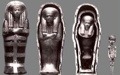 Gli esempi più famosi risalenti all’Antico Egitto sono ovviamente i due feti morti trovati nella tomba di Tutankhamon (per la precisione un aborto al quinto mese di gestazione ed un feto nato morto), ritenuti unanimemente figlie di Ankhesenamon.