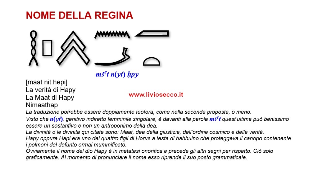 Mi permetto solo di richiamare l’attenzione dei membri del Gruppo alle iscrizioni geroglifiche che sono presenti su Wikipedia. Se da un lato è apprezzabile e pregevole il gesto di offrire al consultatore una interpretazione degli antroponimi e delle titolature, molto spesso riscontro traduzioni non corrette oppure “vecchie”.