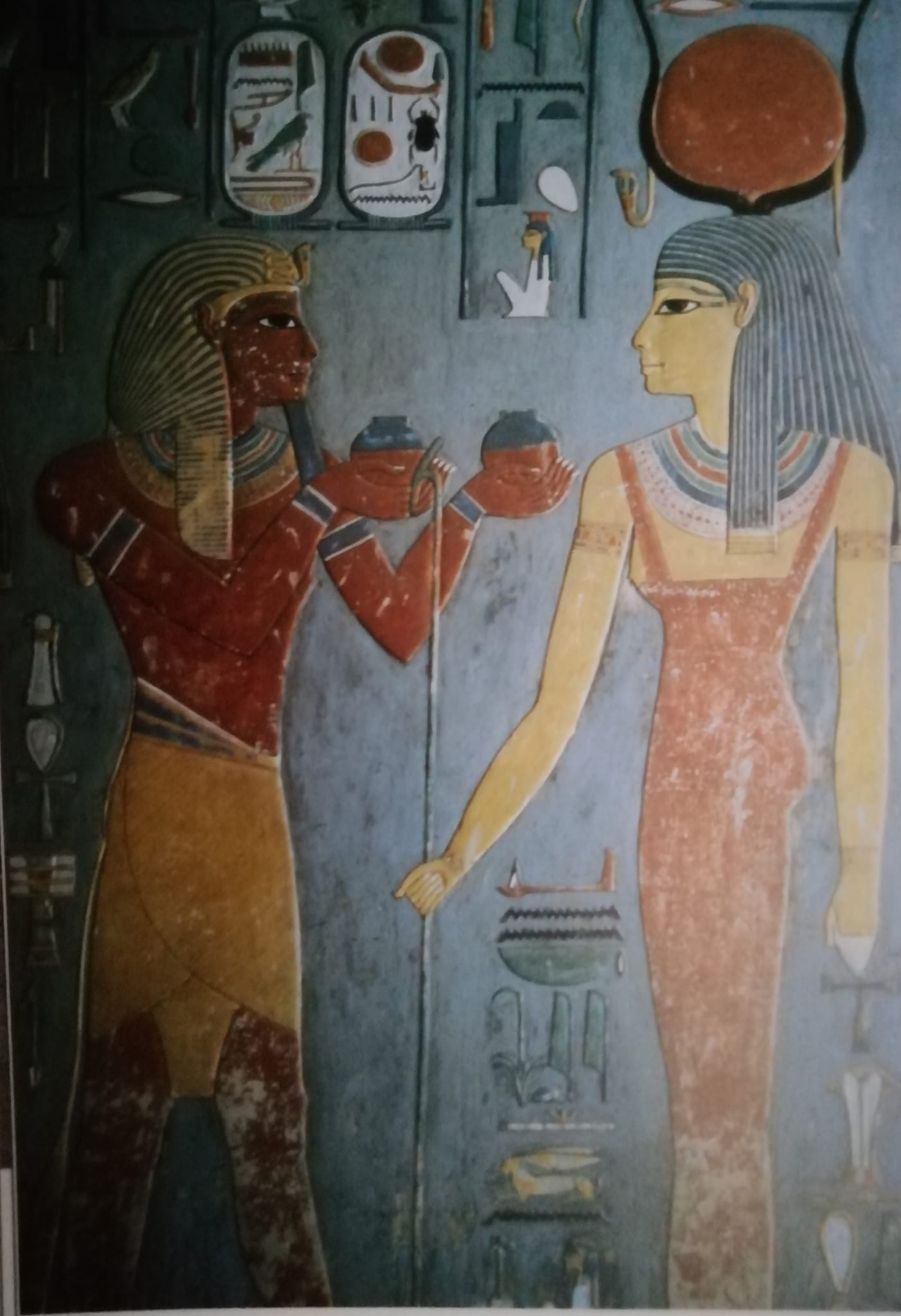 Il legame tra il re e le principali divinità ultraterrene è documentato dalle scene sui pilastri della camera sepolcrale o nell’anticamera , la cui varietà si amplia costantemente nel corso del Nuovo Regno.