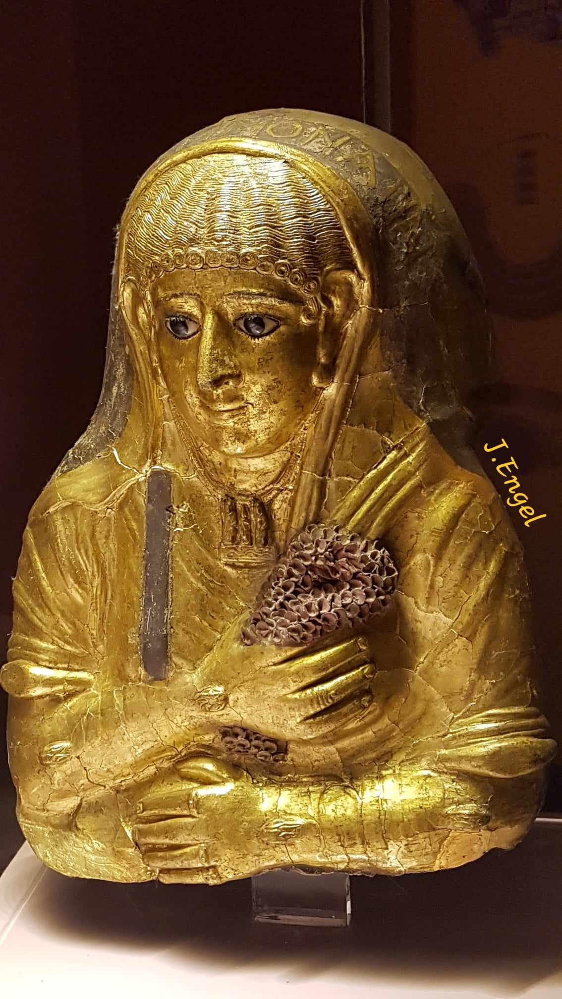 This mask belongs to a lady named Ammonarin, whose name and dress perfectly reflect her Greco-Egyptian cultural and religious background.