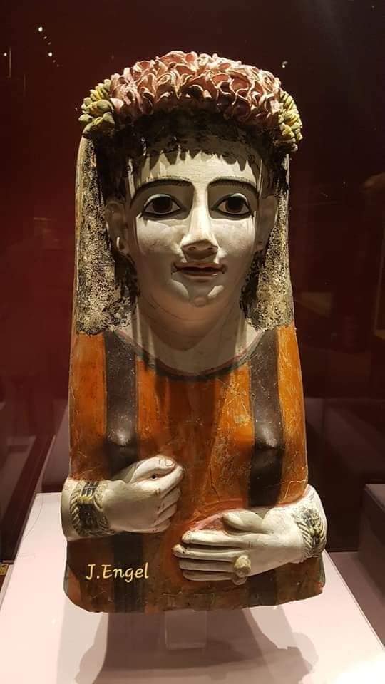 This double influence is seen in the life like portrait of the lady that is combined with ancient Egyptian funerary scenes, rituals, and deities such as Osiris, Isis, and Anubis among others.