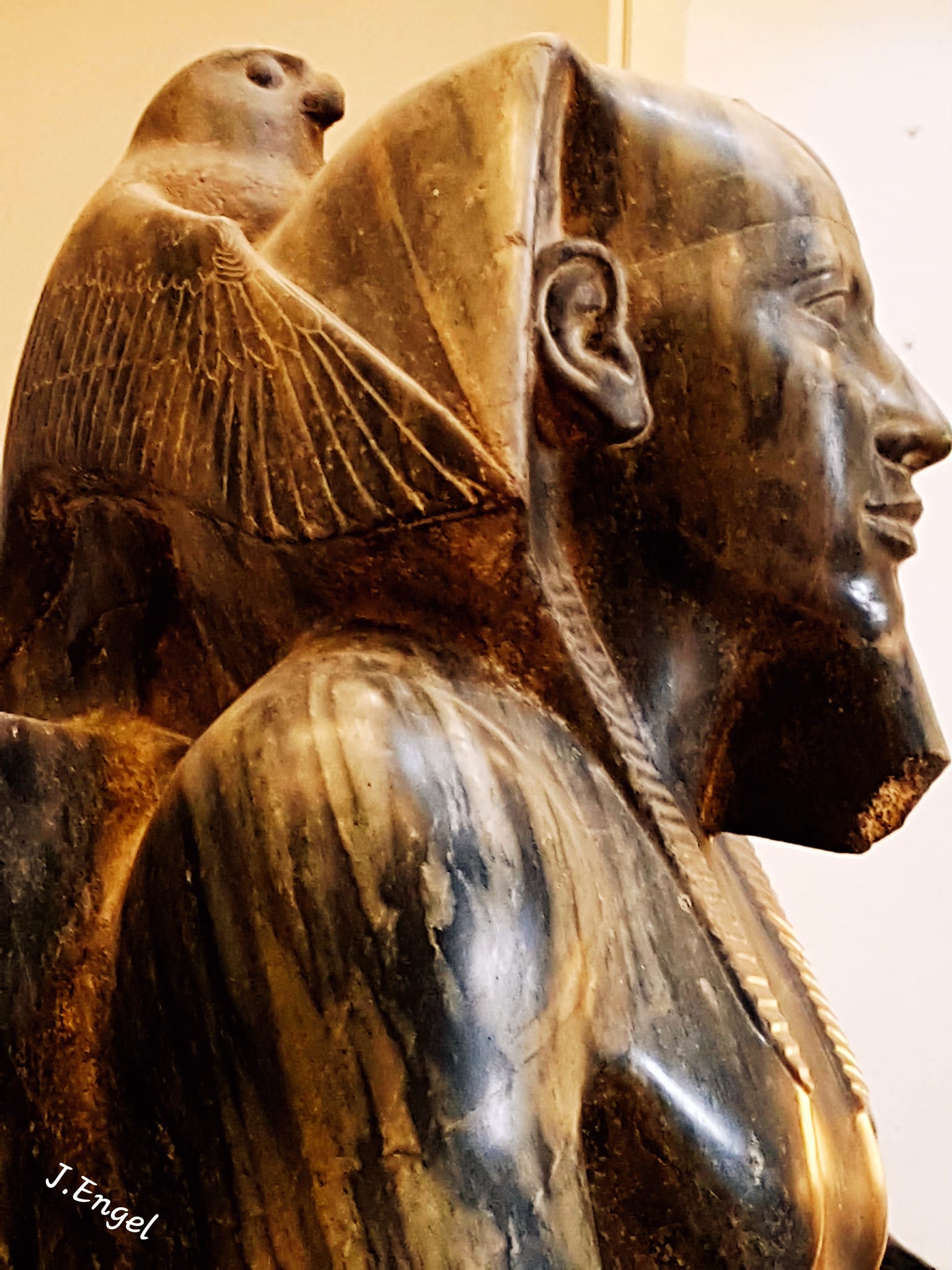 Khafra (also read as Khafre, Khefren and Chephren) was an ancient Egyptian king (pharaoh) of 4th dynasty during the Old Kingdom. He was the son of Khufu and the throne successor of Djedefre. According to the ancient historian Manetho, Khafra was followed by king Bikheris, but according to archaeological evidences he was rather followed by king Menkaure. Khafra was the builder of the second largest pyramid of Giza. The view held by modern Egyptology at large remains that the Great Sphinx was built in approximately 2500 BC for Khafra.[2] There is not much known about Khafra, except the historical reports of Herodotus, who describes him as a cruel and heretic ruler, who kept the Egyptian temples closed after Khufu had sealed them.