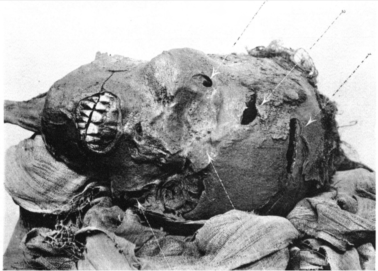 Non mancano comunque le evidenze delle ferite da freccia nelle mummie pervenuteci a partire dal Medio Regno. Non dimentichiamoci inoltre che proprio il simbolo della freccia (Gardiner T11) identificava il medico (“sinw”)