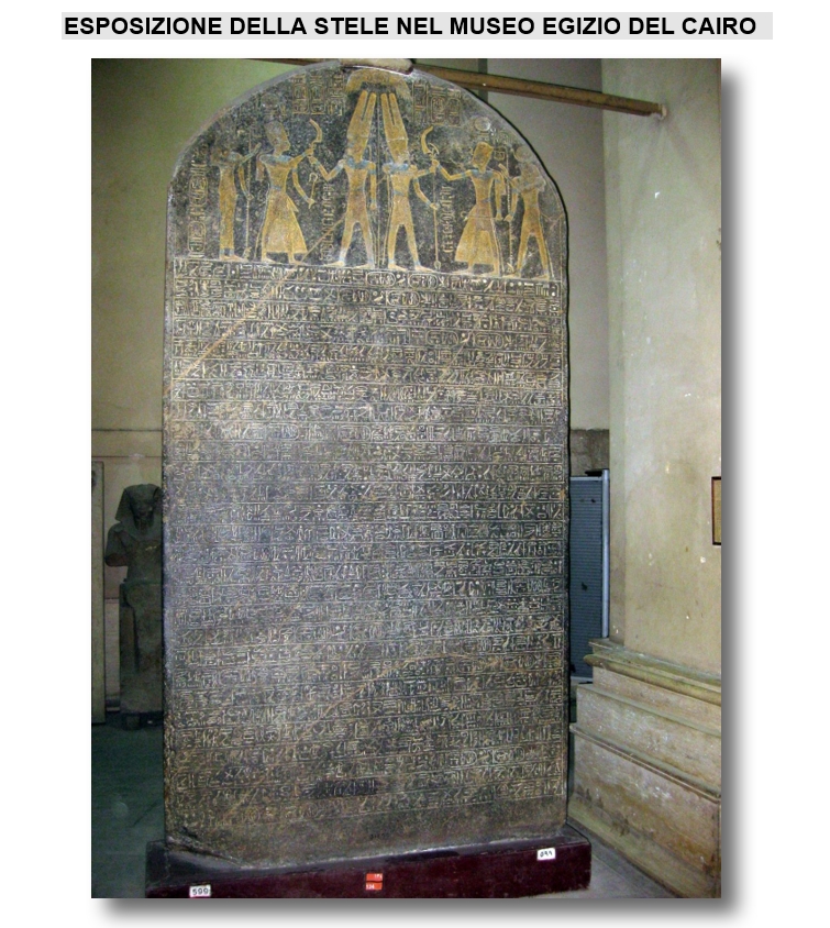 IMMAGINE 1: visualizzazione della stele esposta al Museo Egizio del Cairo di Piazza Tahrir. Durante un certo periodo di tempo, quando la relazione con lo stato ebraico sfociò in una lunga serie di guerre arabo-israeliane, la stele rimase esposta nel Museo ma si doveva andare a cercarla.