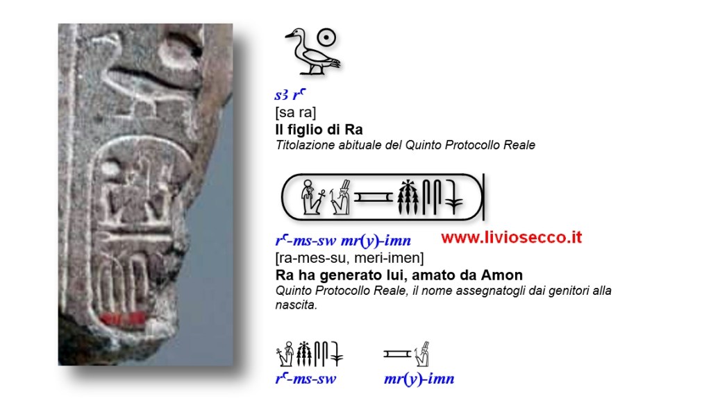 Purtroppo lo studio dell’onomastica regale non è semplice. Il breve spazio dei cartigli e le metatesi onorifiche e grafiche impongono spesso che la scrittura sia difettiva e non segua sempre la corretta sequenza degli elementi grammaticali.