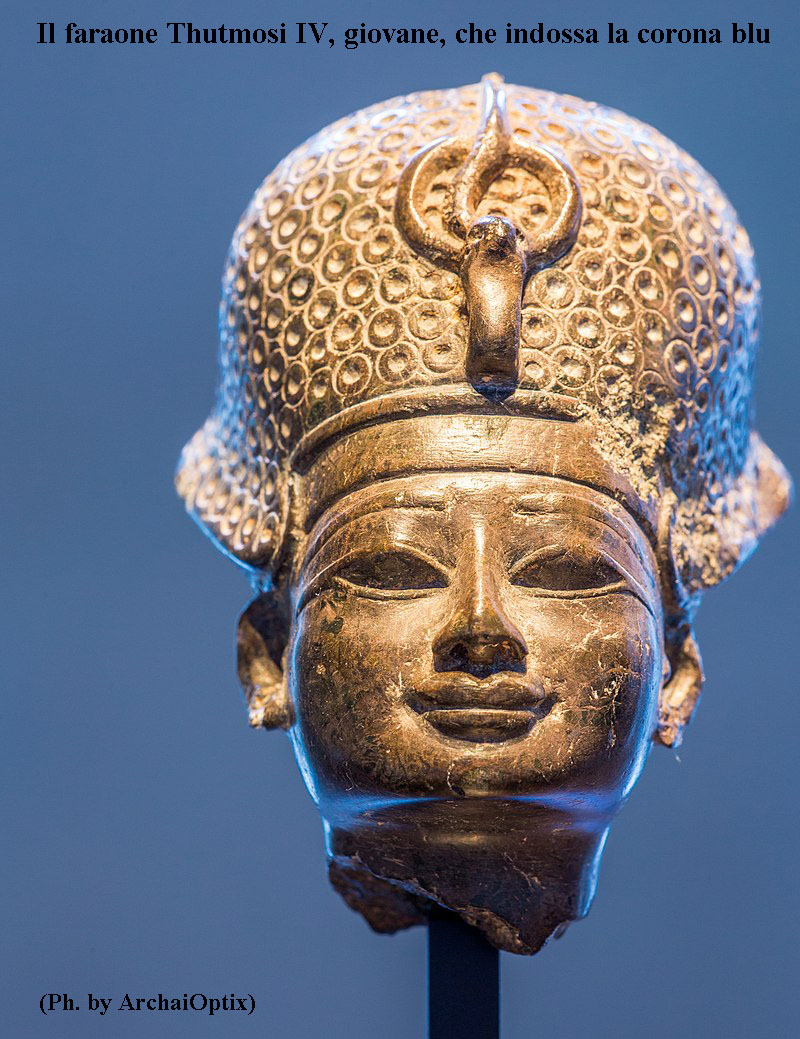 <<…….Guardami figlio mio, Tuthmosi; sono io tuo padre Harmakis-Khepri-Ra-Atum. Io ti assegnerò la mia regalità sulla terra dei viventi: tu porterai la Corona bianca e la Corona rossa sul trono di Geb……….>>.
